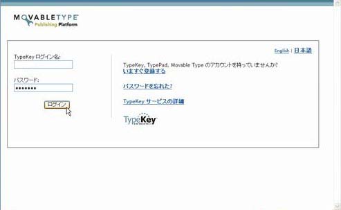 上記画面からTypeKey登録で登録したログイン名とパスワードを使用してログインしてください。